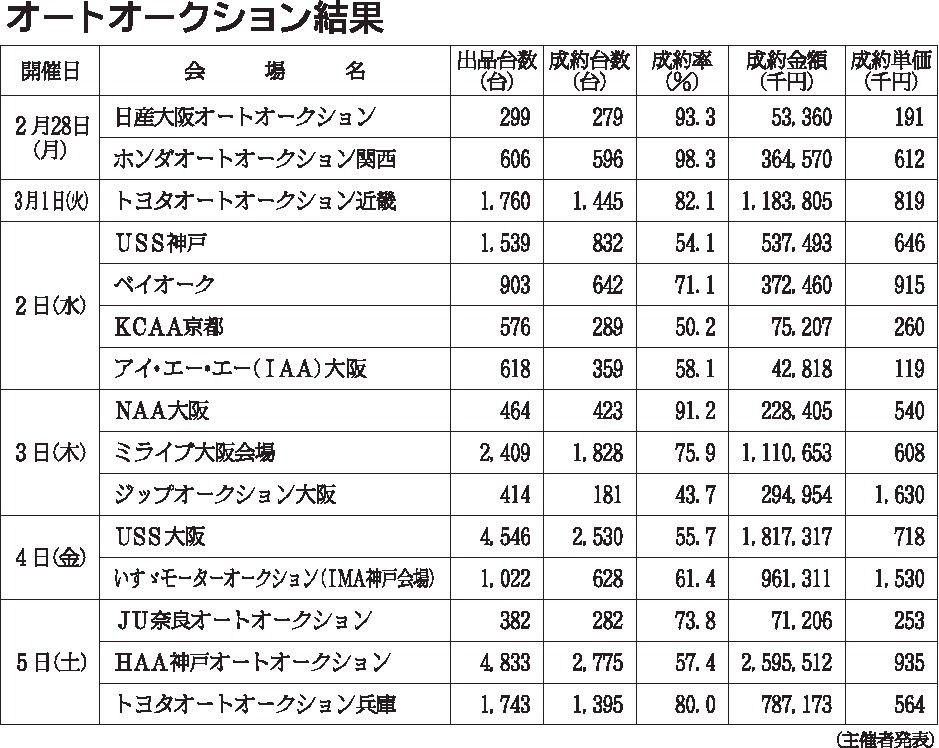 〈オートオークション結果〉近畿地区 2022/2/28~3/5