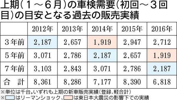 ディーラーのサービス部門や専業整備工場など、保有ビジネスに関わる事業者に再び“試練の前半戦”が訪れようとしている。2016年1~6月は、車検需要(初回から3回目)の目安になる過去の新車販売実績(3年、5年、7年前の合計)が前年同期比18・...