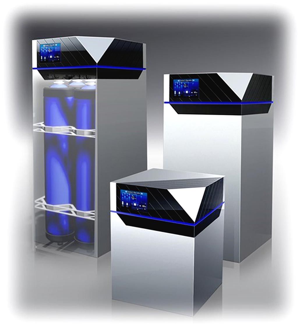 ミライで採用する樹脂製タンクを4本使用してモジュール化した。4~36キログラムまで水素搭載量の異なる4種を用意する。軽量化できるため、従来の金属製カードルに比べて水素輸送効率は約4倍になるという。水素供給状態などを自動監視するシステムモニターと、異常を検出した際に水素供給を停止する安全機能を内蔵し、安全性を担保する。