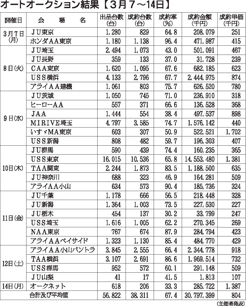 〈オートオークション結果〉首都圏 2022/3/7~14