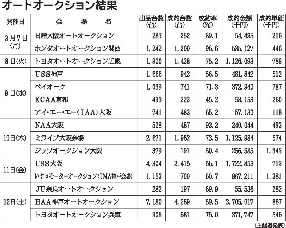 〈オートオークション結果〉近畿地区 2022/3/7~12