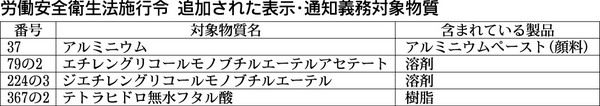 安衛令改正、自補修塗料製品関連は4物質が対象
