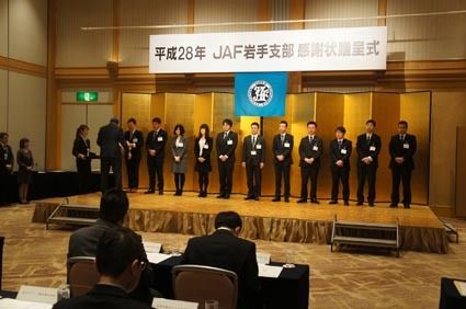 ◆秋田支部「来年までに18万会員」 【秋田】日本自動車連盟(JAF)秋田支部(伊藤哲之支部長)は28日、秋田市で「2016年感謝の会」を開催した。16年内に優れた会員獲得実績を残した販社、拠点、個人を表彰した。 挨拶に立った伊藤支部長は「...