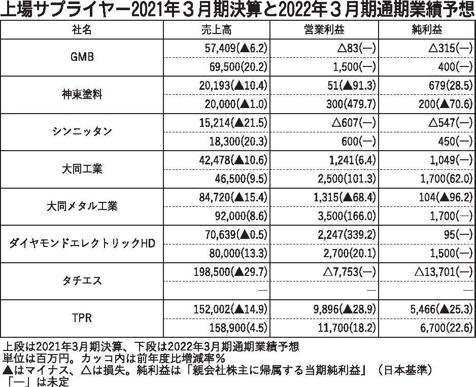 〈上場サプライヤー2021年3月期決算と2022年3月期通期業績予想〉