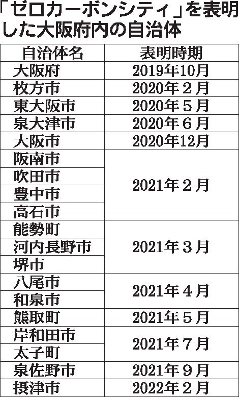 大阪府内の市町村で、カーボンニュートラルの実現に向けた動きが強まっている。2050年の二酸化炭素(CO2)排出量実質ゼロを目指す「ゼロカーボンシティ」の表明都市が、府内全市町村の3分の1を超えた。各地域の取り組みは自動車分野にも及ぶ。次世...