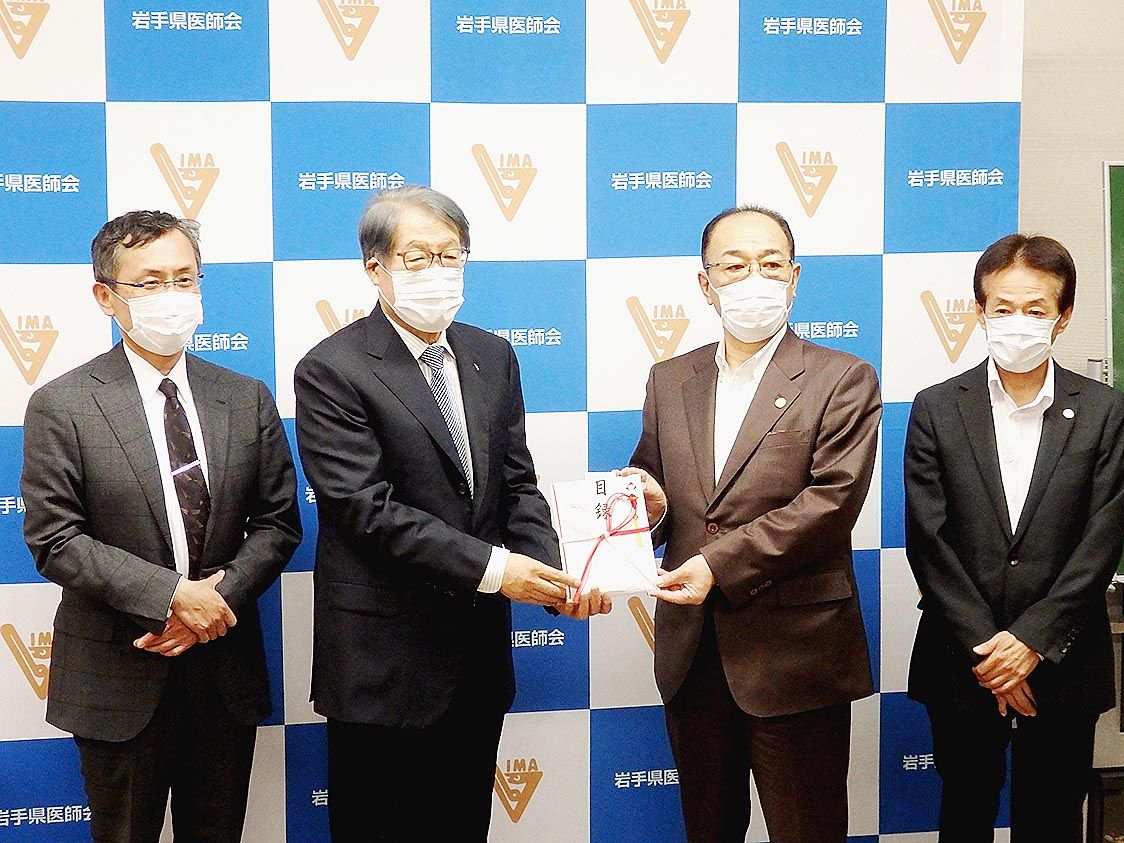 【盛岡】岩手ダイハツ(中田利光社長)は、岩手県の医療従事者応援に役立ててもらおうと、岩手県医師会(小原紀彰会長)に寄付金100万円を贈った。盛岡市の同医師会会館で「寄付金贈呈式」が行われ、中田社長が小原会長に目録を手渡した。寄付金は、新型...