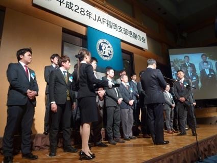 日本自動車連盟(JAF)福岡支部(太田憲男支部長)は9日、福岡市博多区のホテルで「平成28年JAF感謝状贈呈基準、JAF福岡支部感謝の会」を開いた。福岡県内のディーラートップや幹部社員、受賞者ら多数が訪れた。 太田支部長は「昨年1月から1...