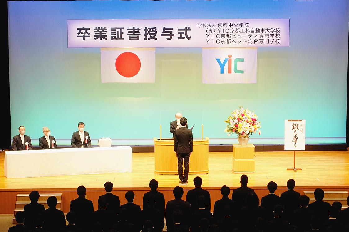 【京都】京都中央学院が運営するYIC京都工科自動車大学校(村田忠男校長)は、京都市南区の京都テルサホールで「2021年度卒業証書授与式」を行った=写真。1級自動車整備科12人、自動車整備科の四輪コース29人と二輪コース18人、国際ITビジ...