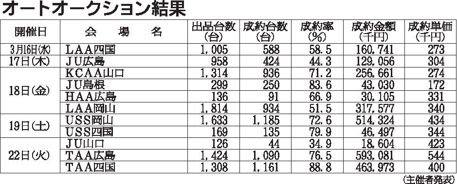 〈オートオークション結果〉中・四国地区 2025/12/17~23