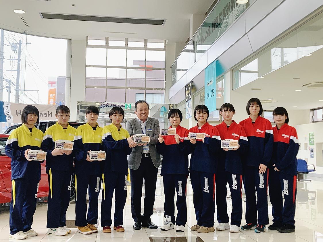【函館】ネッツトヨタ函館(高木和良社長)は、26日から富山県で開かれた「第17回春の全国中学生ハンドボール選手権大会」に、北海道代表として出場した函館市立巴中学校と函館市立本通中学校に寄付金合計6万円を贈呈。贈呈式の席上、高木社長が激励の...