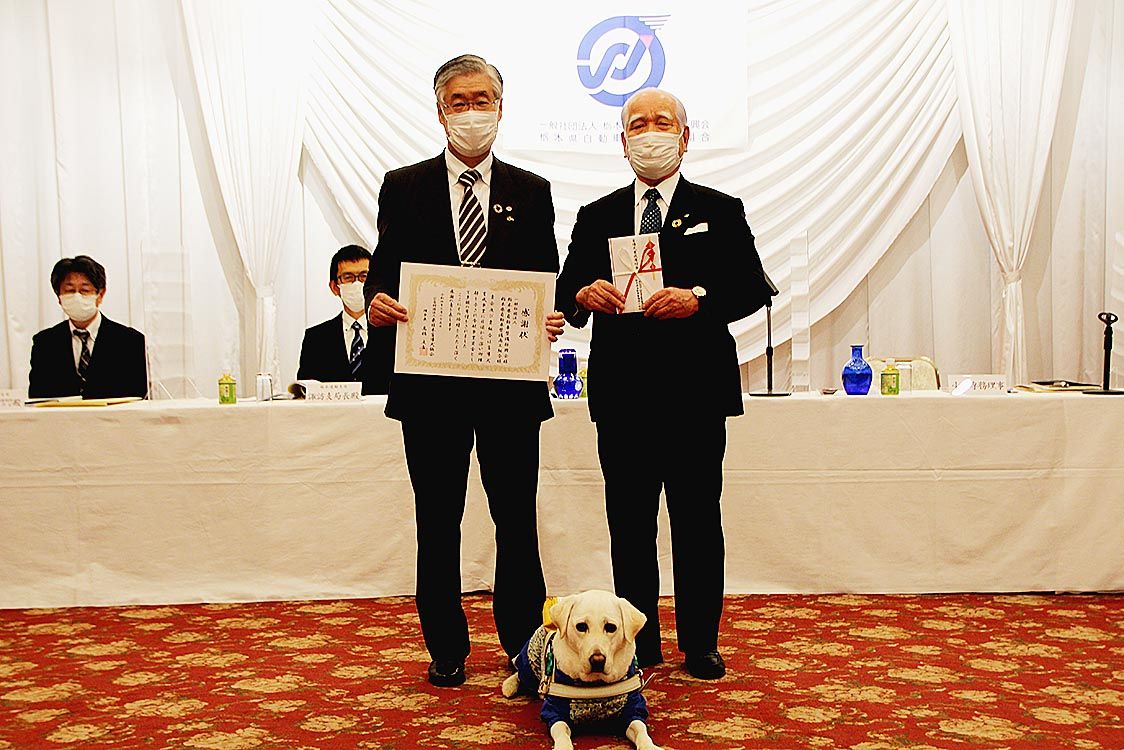 【宇都宮】栃木県自動車整備振興会・商工組合(喜谷辰夫会長・理事長)は、視覚障がい者をサポートする盲導犬の育成に役立ててもらおうと公益財団法人東日本盲導犬協会(髙橋文吉理事長、宇都宮市)に寄付金26万5152円を寄贈した=写真。寄贈式は、宇...