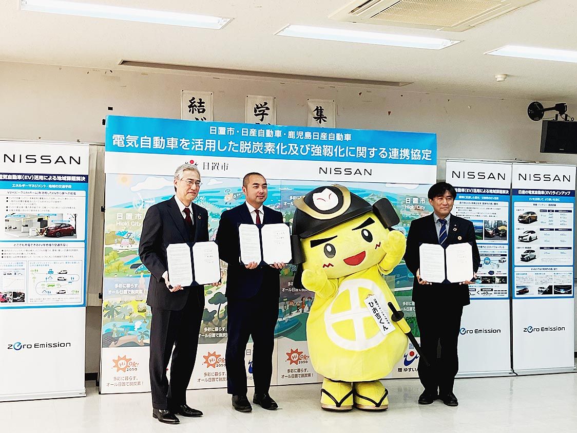 【鹿児島】鹿児島日産(石原一智社長)と日産自動車、日置市の3者は、地域課題の解決を狙いに「電気自動車(EV)を活用した脱炭素化及び強靭化に関する連携協定」を締結した。災害時にEVを電力源としてスムーズに活用できるように対策を講じるとともに...