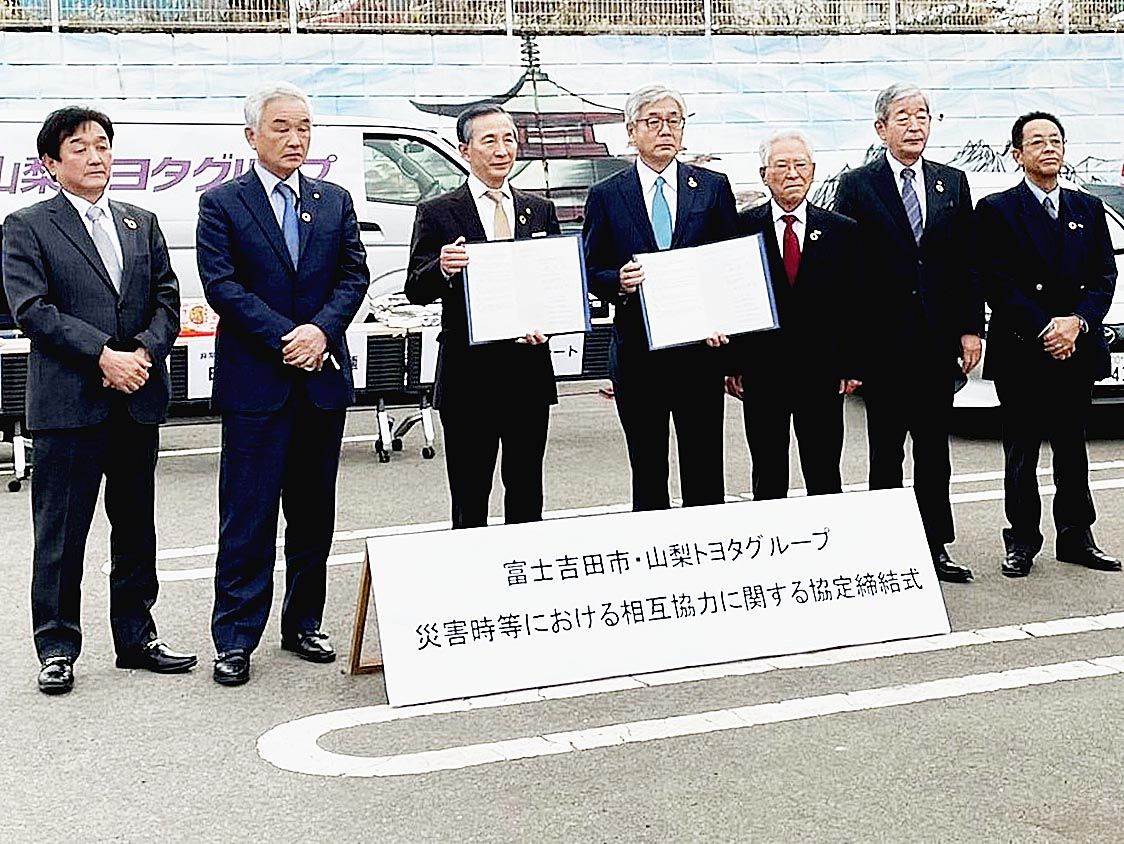 【甲府】山梨トヨタグループ(佐々木宏明代表)は、富士吉田市と「災害時等における相互協力に関する協定」を締結した。同市内で災害救助法第2条が適用になる可能性がある場合、車両や物資を貸与する。グループ5社と堀内茂富士吉田市長らが出席し、市役所...