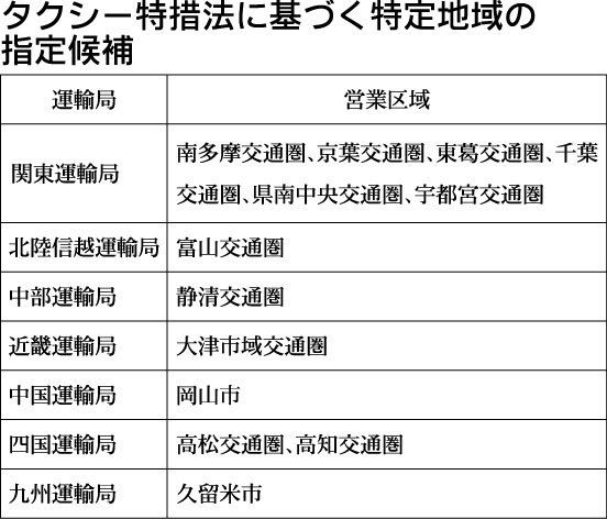 タクシー特定地域候補、新たに13地域公表、適正化計画手続き加速