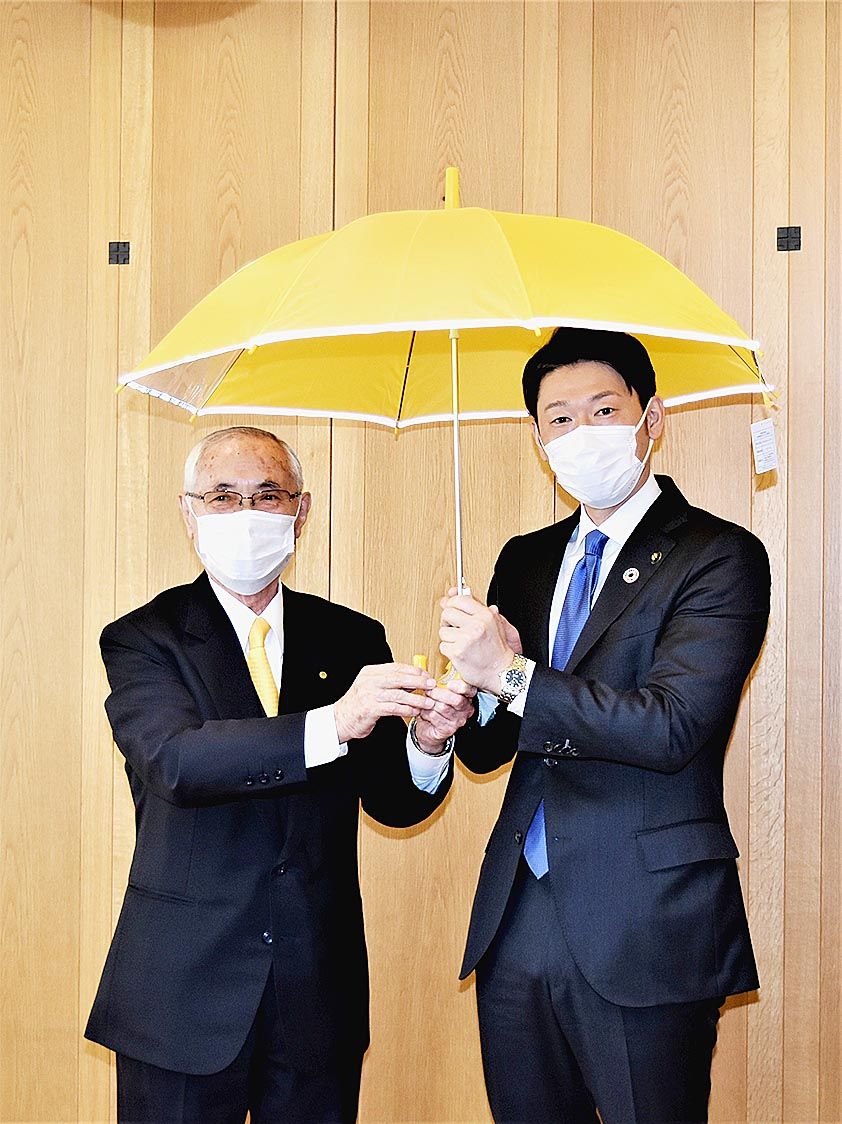 〇…黄色い傘で事故防止―。旭川地方自家用自動車協会(吉※田裕会長)は4日、小学校新入学児童用として旭川市に反射材付き学童黄傘1500本を寄贈した。 〇… 吉※田会長、金谷和文副会長、植平有治副会長らが旭川市役所を訪問。吉※田会長が今津寛介...