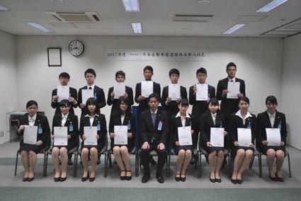 日本自動車連盟(JAF)関西本部(堀内俊樹本部長)は3日、大阪府茨木市の同支部で入社式を開いた。今年度は男性ロードサービス隊員7、女性事務職員5、ロードサービス受付指令室職員3の計15人が入社。西岡敏明事務局長が訓示を述べ、辞令を交付した...
