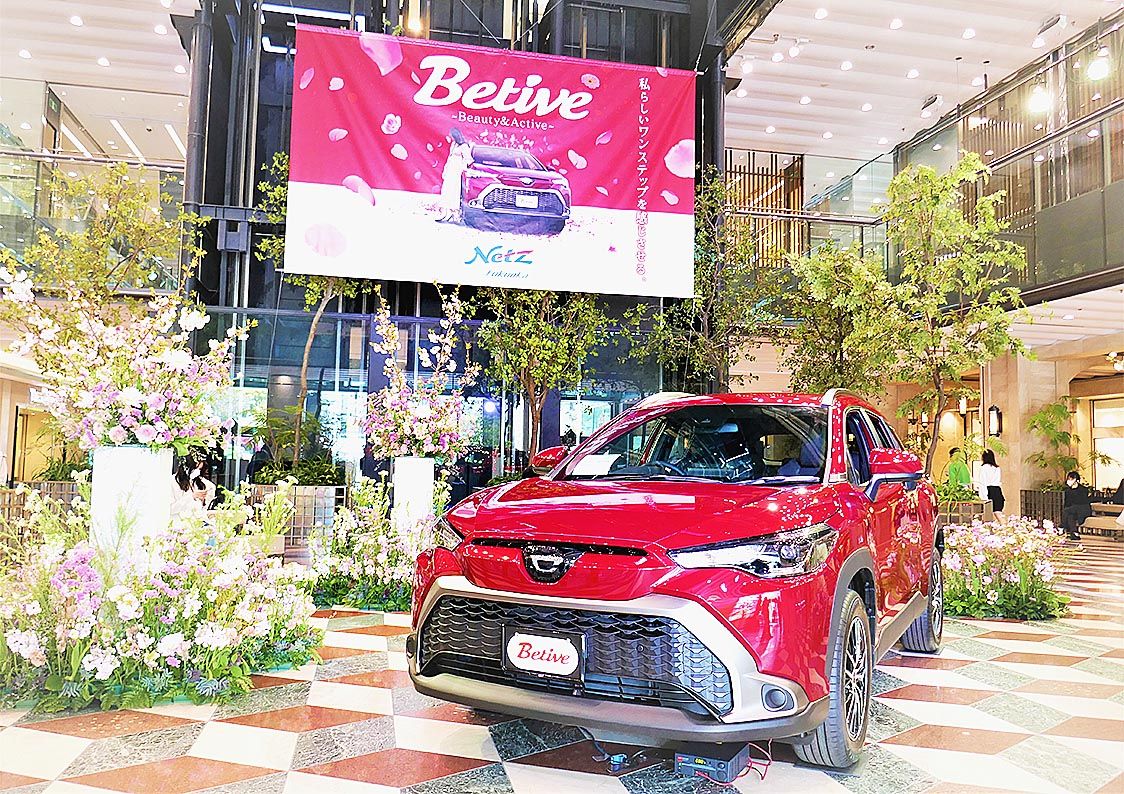 ネッツトヨタ福岡(金野誠社長)は2、3日の2日間、福岡市中央区の商業施設で、「カローラクロス」のオリジナル特別仕様車「Betive(ビティブ)」の展示イベントを開催した。ビティブとロゴ入りのオリジナルアイテムを展示し、周りを季節の花で装飾...
