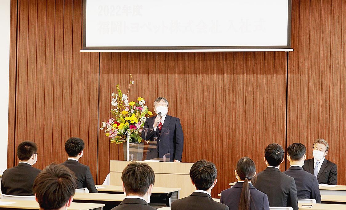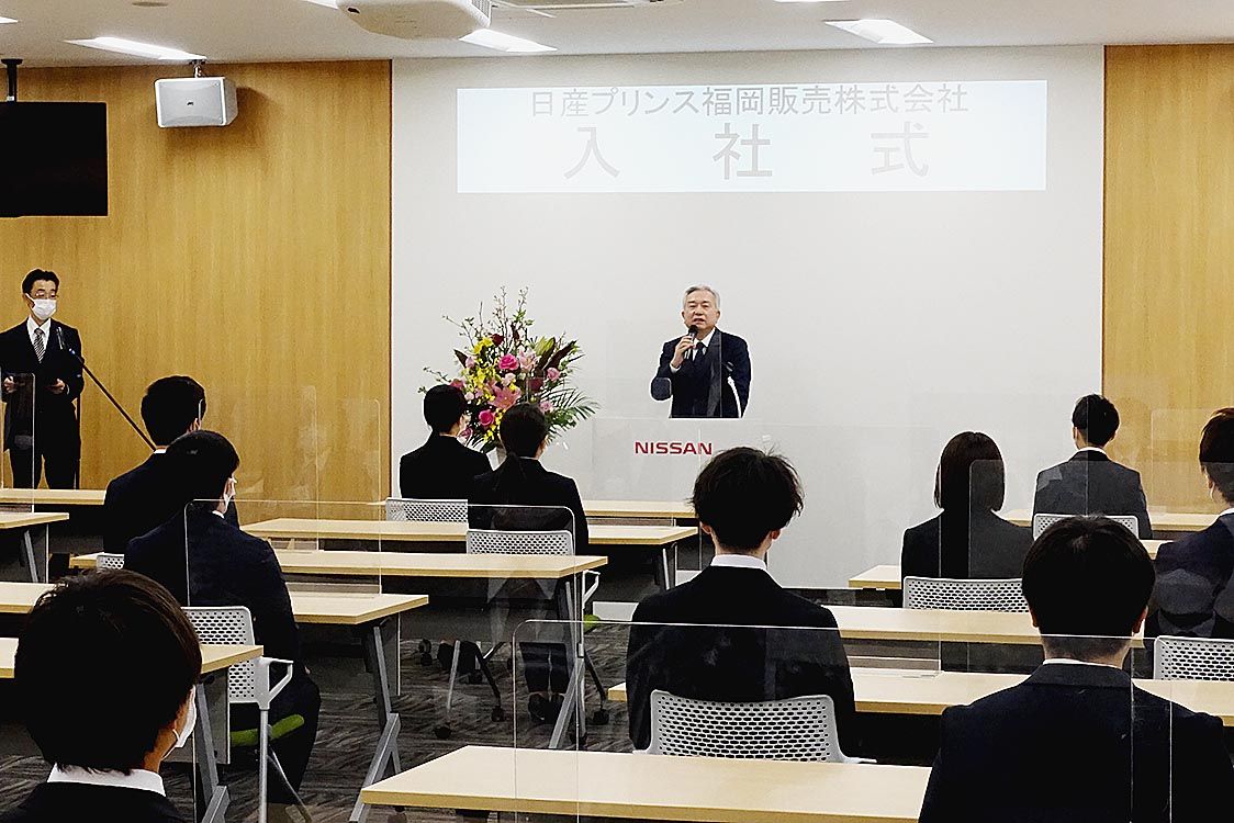 福岡県新車ディーラーで入社式 トップら新人へエール