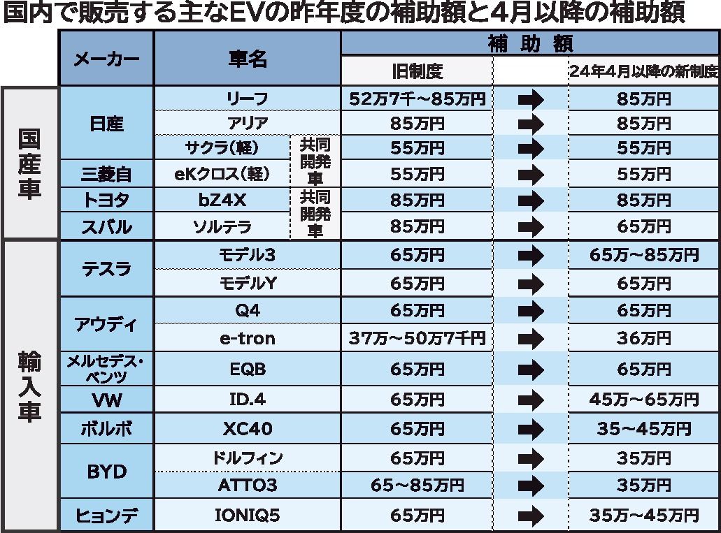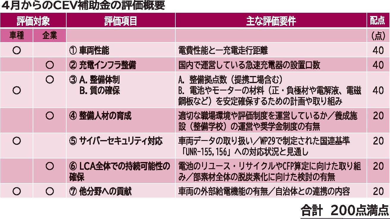 電気自動車(EV)などの購入費用を補助する国の「クリーンエネルギー自動車(CEV)補助金制度」が新しくなった。車両性能だけでなく、充電や整備網、部材の調達力など自動車メーカーの取り組みも補助額の審査対象だ。補助制度は高価な次世代車の普及に...