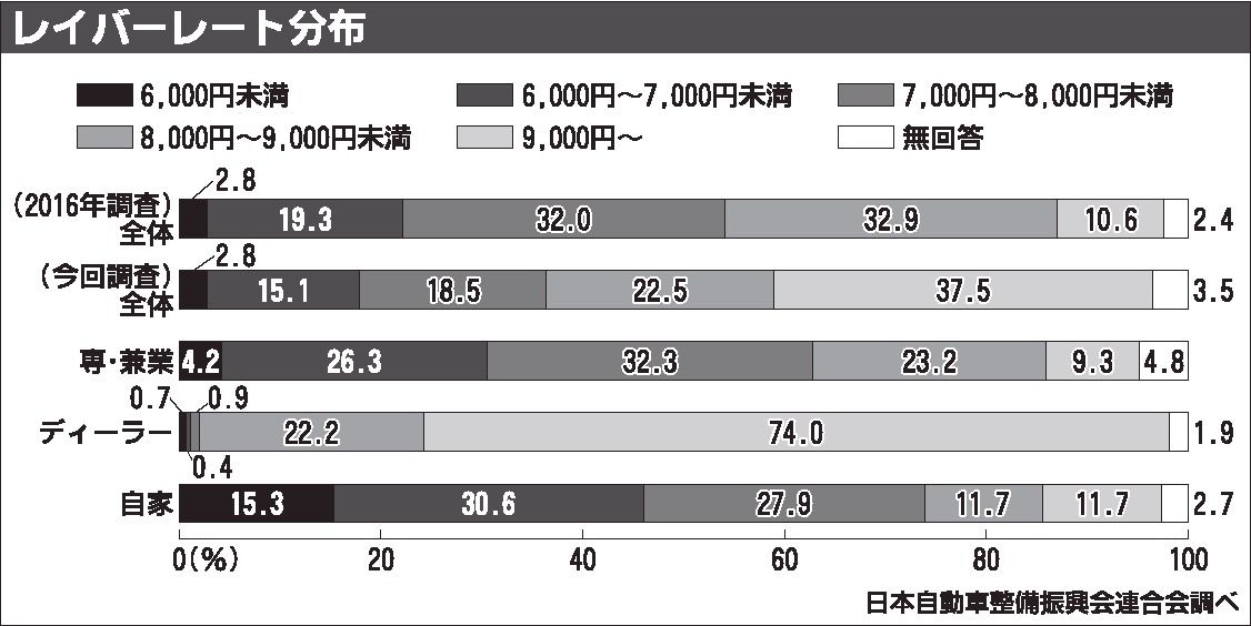 日本自動車整備振興会連合会(日整連、竹林武一会長)の2023年度版「自動車整備白書」で、一般客向けの点検整備などに使用するレイバーレート(1時間当たりの工賃単価)の水準が上がっていることが分かった。16年度の調査では、回答項目の中で最も高...