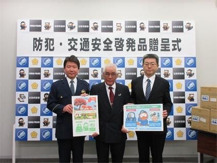 滋賀整振、防犯意識の啓発へ県警本部にグッズ