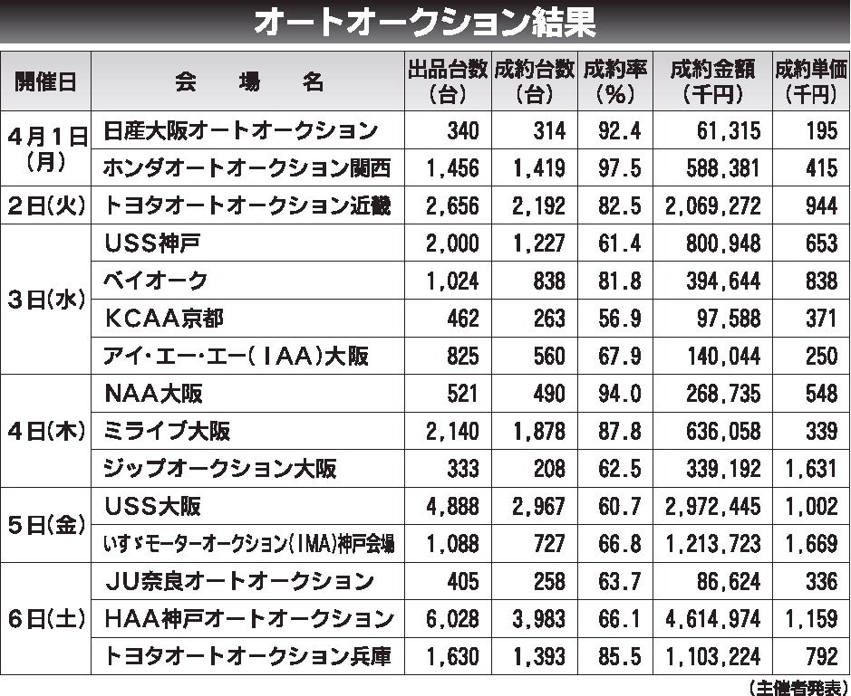 〈オートオークション結果〉近畿地区 2024/4/1~6