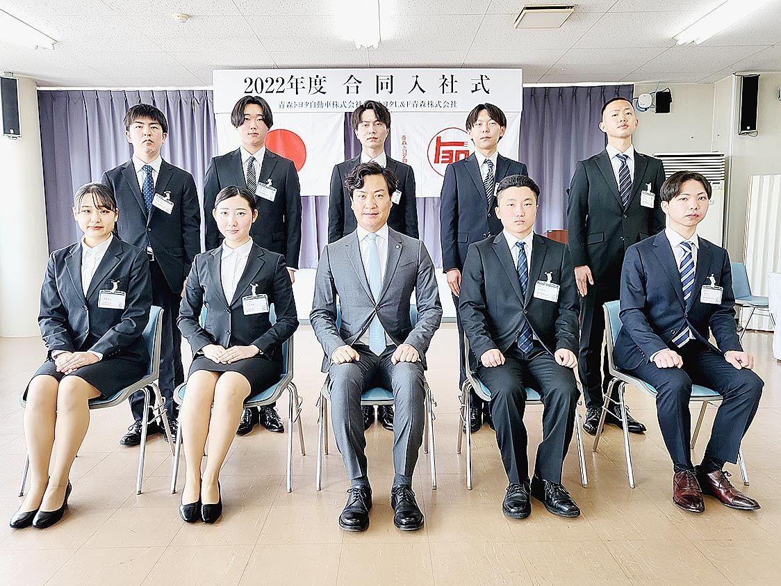 【青森】青森トヨタ(小野大介社長)とトヨタL&F青森(同社長)は1日、青森市の青森トヨタ本社で「2022年度合同入社式」を開催した。小野社長は青森トヨタ9人、トヨタL&F青森2人の新入社員に辞令を交付し、両社役員、幹部らとともに新入社員1...