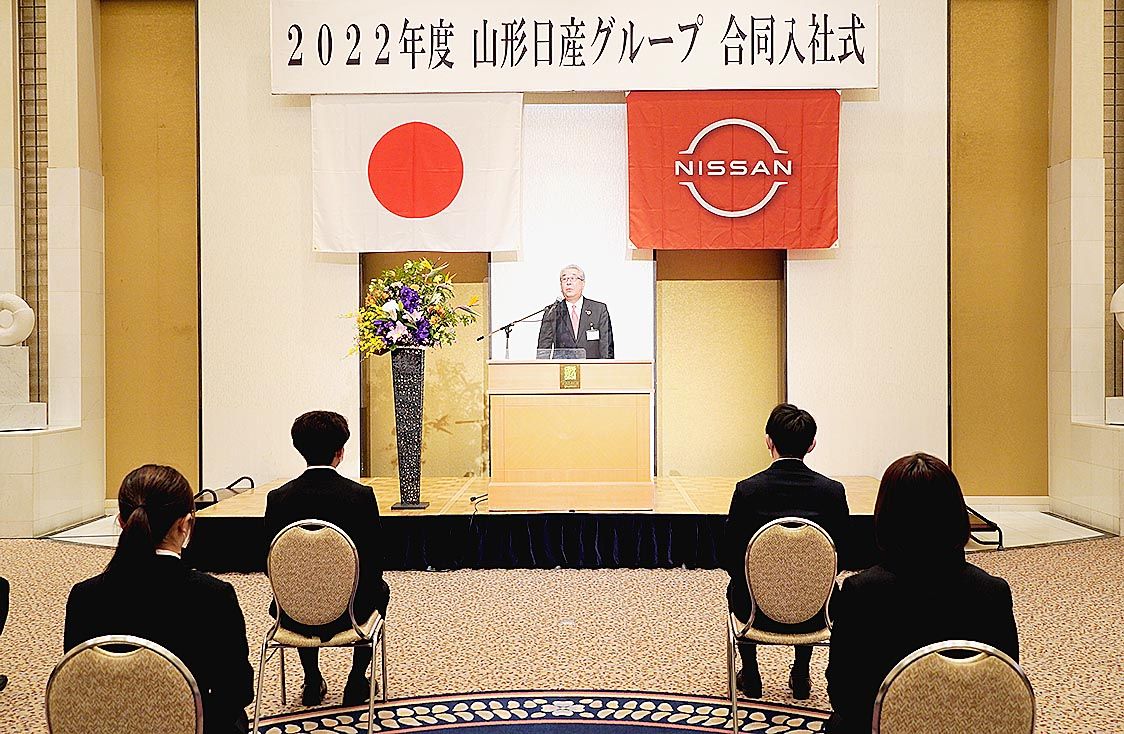 【山形】山形日産(小関眞一社長)と日産プリンス山形(同社長)の山形日産グループは1日、山形市で「2022年度合同入社式」を開催した。役員や保護者が見守る中、18人の新入社員に小関社長から辞令が交付され、社会人としての一歩を踏み出した。 小...