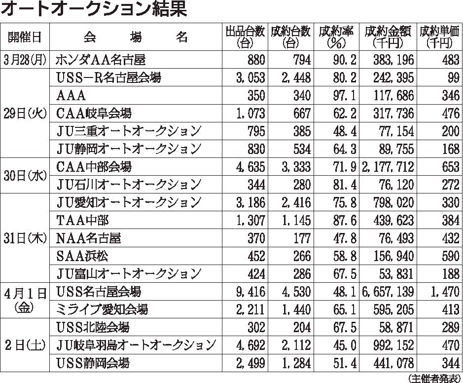 〈オートオークション結果〉中部地区 2022/3/28~4/2