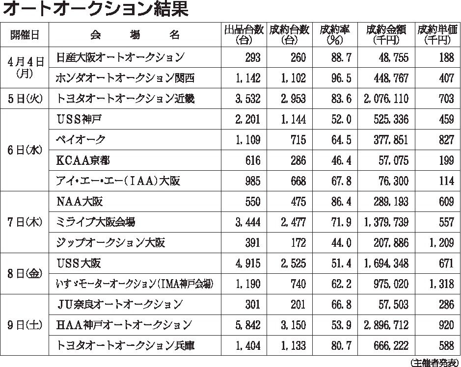 〈オートオークション結果〉近畿地区 2022/4/4~9