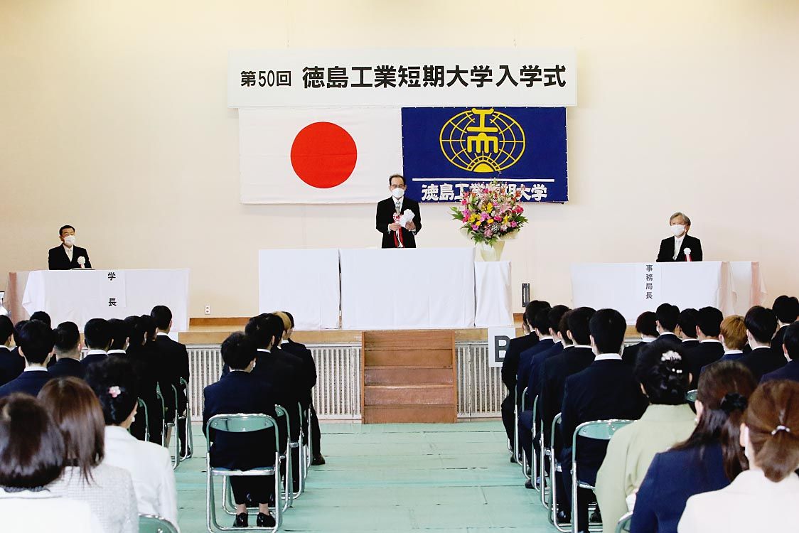 【徳島】徳島工業短期大学(多田博夫学長)はこのほど、徳島県板野町の同校体育館で「第50回入学式」を開催し、合計56人の新入生を迎えた。今年度の入学者の内訳は、2級整備士を目指す自動車工業科が女子3人、留学生4人を含む54人で留学生の出身国...
