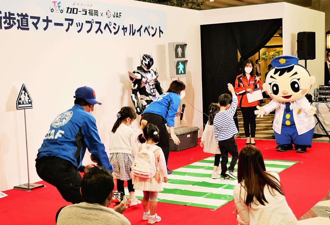 カローラ福岡とJAF福岡、ヒーローショーで安全意識高揚 横断歩道マナーアップイベント