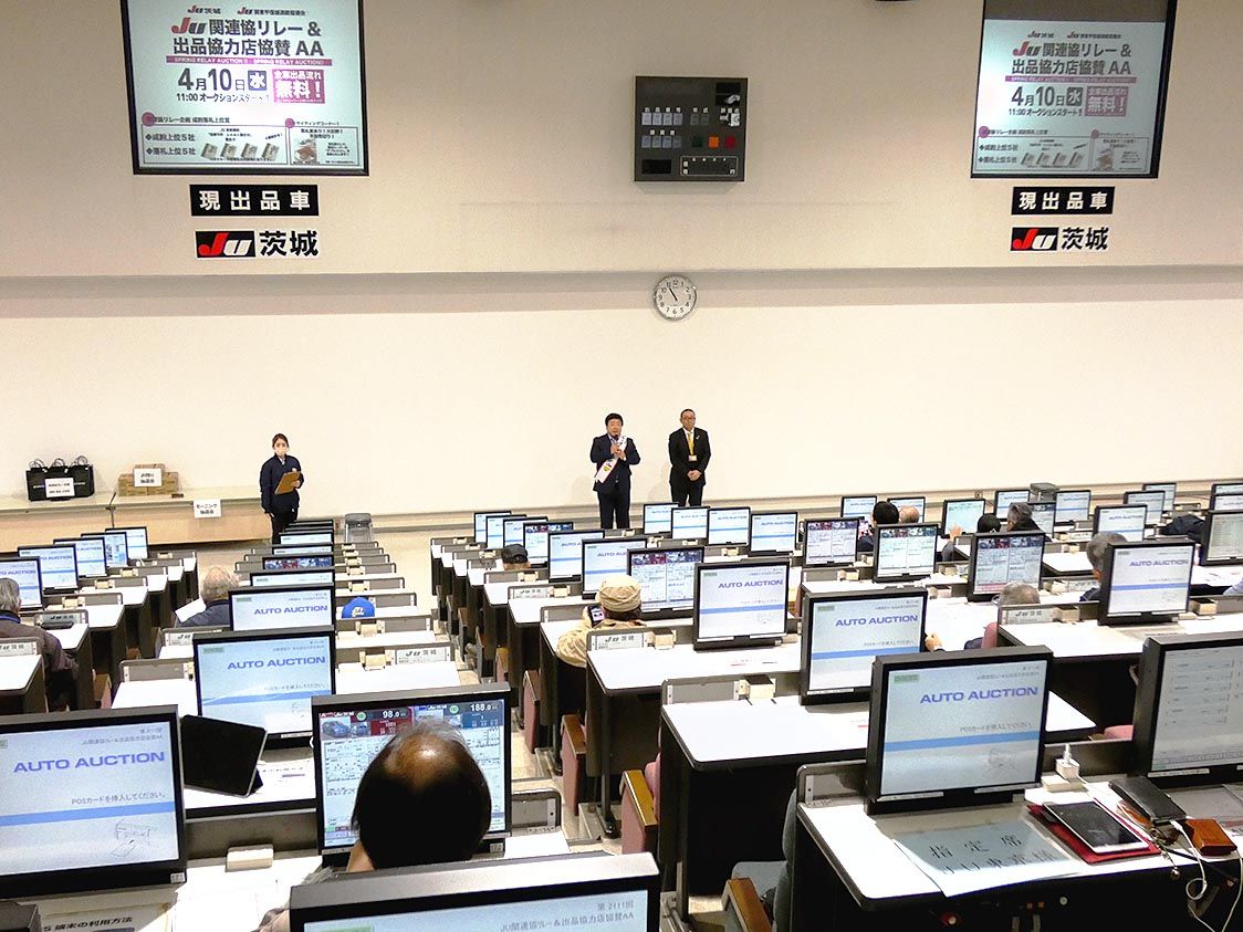 【水戸】茨城県中古自動車販売商工組合(JU茨城、長嶋和彦理事長)は、小美玉市内の常設会場で「関連協リレー&出品協力店協賛オークション(AA)」を開催した。出品台数は776台、成約率62.6%と盛況だった。 競り開始前のセレモニーでは長嶋理...