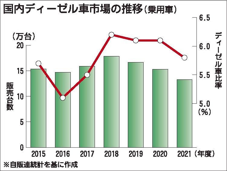 マツダのディーゼル車戦略が正念場を迎えている。「次世代燃料を適用する上でもエンジンの素性を高める必要がある」(中井英二執行役員)と内燃機関への投資を続けるマツダだが、足元のディーゼル車市場は欧州、日本ともに縮小傾向にある。ディーゼルエンジ...