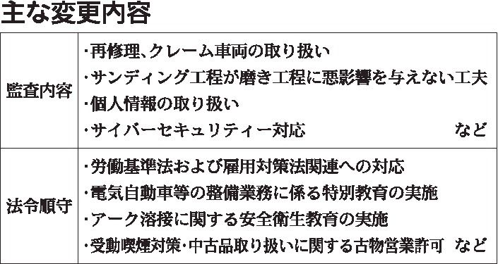 第三者認証機関のテュフラインランドジャパン(ジュネル・ペティット社長、横浜市港北区)は今月、板金塗装(BP)工場の第三者認証の監査項目を大幅に改訂した。「特定整備」など整備や企業経営に関わる法改正に伴い、事業者が求められる法令順守への対応...