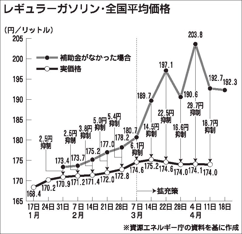 ガソリン高騰対策、補助金は一定の効果 「トリガー条項」凍結解除見送り