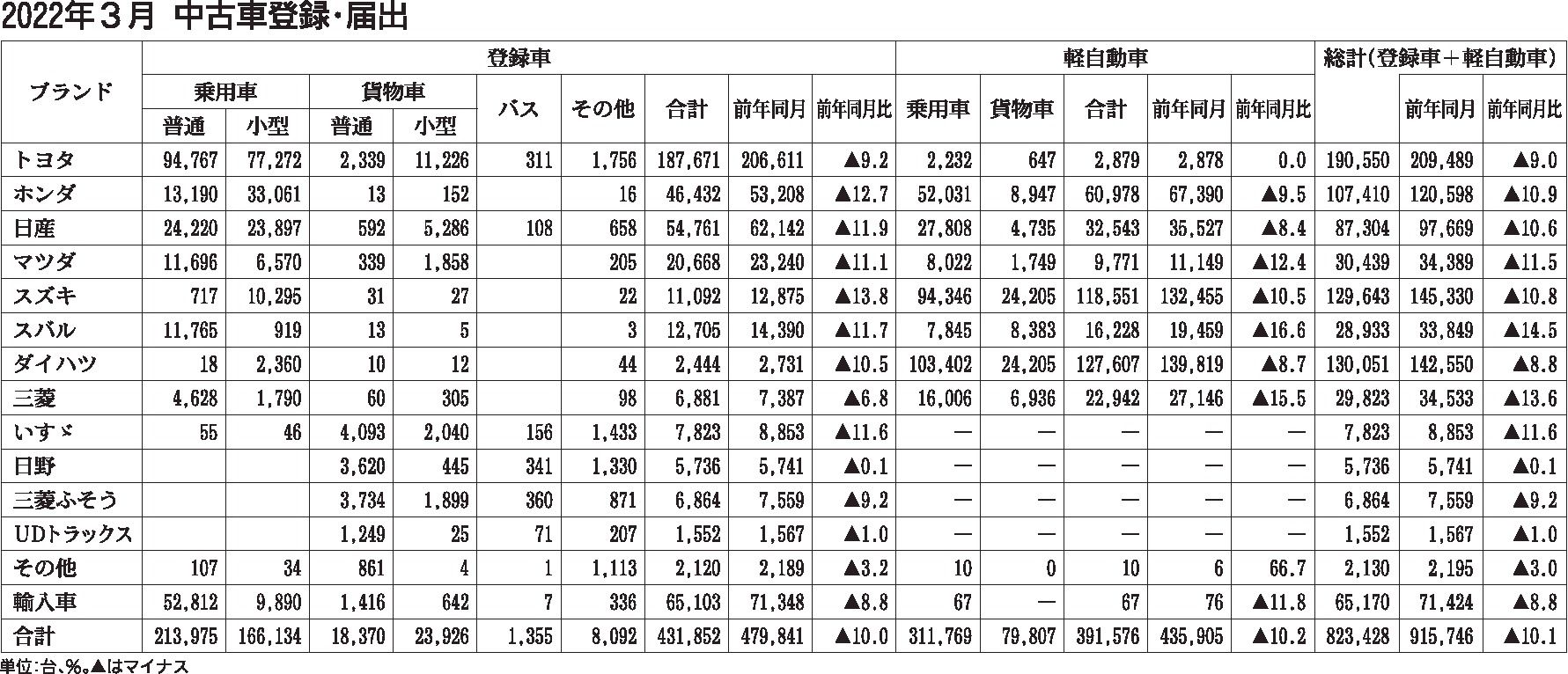 〈2022年3月 中古車登録・届け出〉