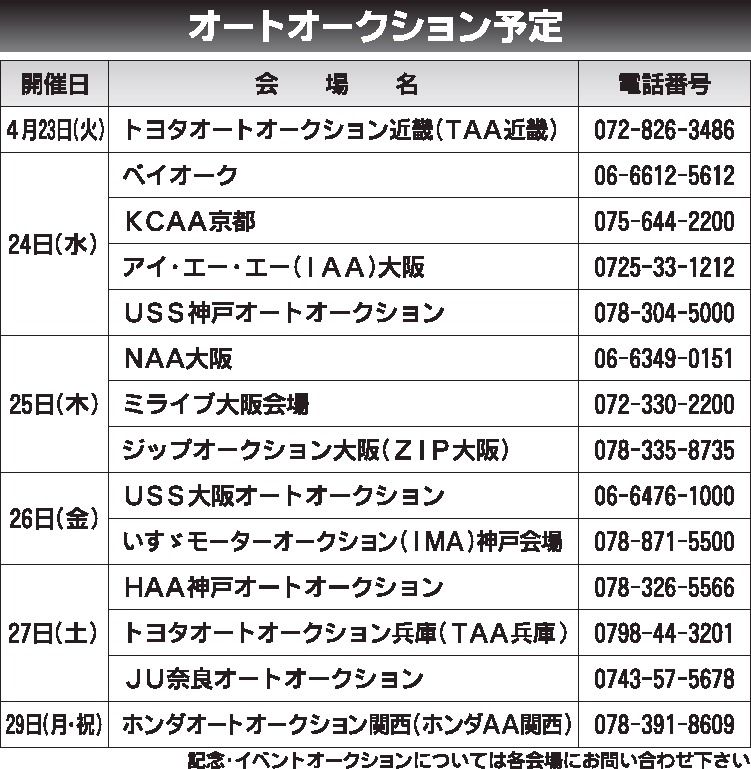 〈オートオークション予定〉近畿地区 2024/4/23~29