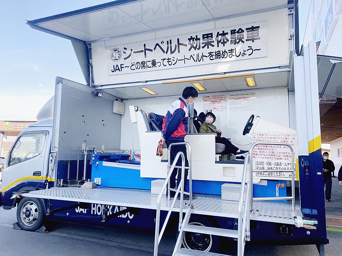 日本自動車連盟(JAF)札幌支部(横井隆支部長)は15日、春の全国交通安全運動に合わせて、シートベルトコンビンサー(模擬衝突体験車)による衝突体験会を複合商業施設・ブランチ札幌月寒で開いた。参加者は時速5㌔㍍の衝突体験を通じて、シートベル...