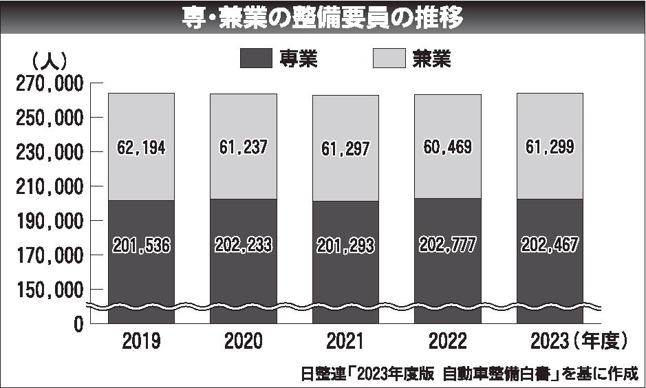 連載「2023年度版 自動車整備白書を読む」(3)整備要員数が微増