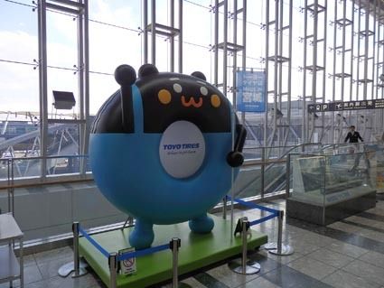 【仙台】東洋ゴム工業はこのほど、宮城県岩沼市の仙台空港2階出発ロビーに、同社のゆるキャラ「わっくま」の大型オブジェ「ビッグわっくま」を設置した。オブジェの中央にはディスプレーを内蔵している。岩沼市の同社仙台工場とタイヤの製造工程などを紹介...