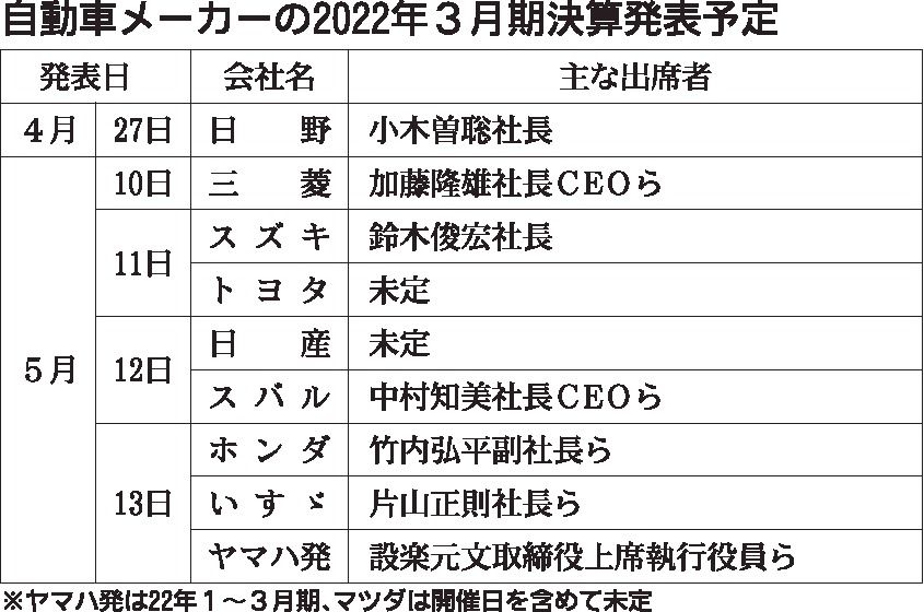 自動車メーカーの2022年3月期決算の発表が27日から始まる。1~3月期は半導体不足や新型コロナウイルス感染拡大による部品調達難が続き、各社で操業停止が相次いだ。さらに、ウクライナに侵攻したロシアへの経済制裁によって資源価格が一段と高騰し...
