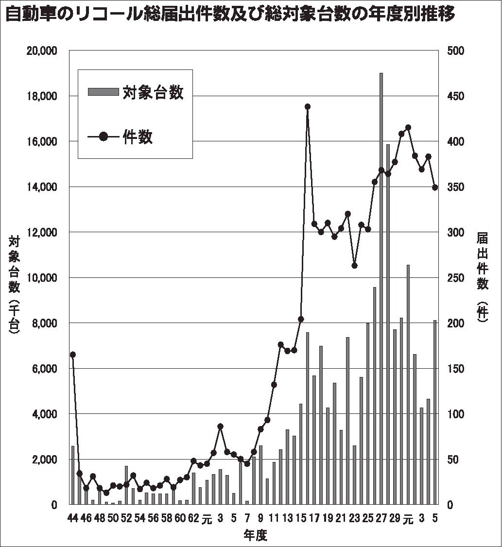 国産車は、総届け出件数が前年度と比べて3件増えて169件となり、5年ぶりに増加した。総対象台数は2年連続で増え、前年度比で約1.9倍の762万8040台となった。