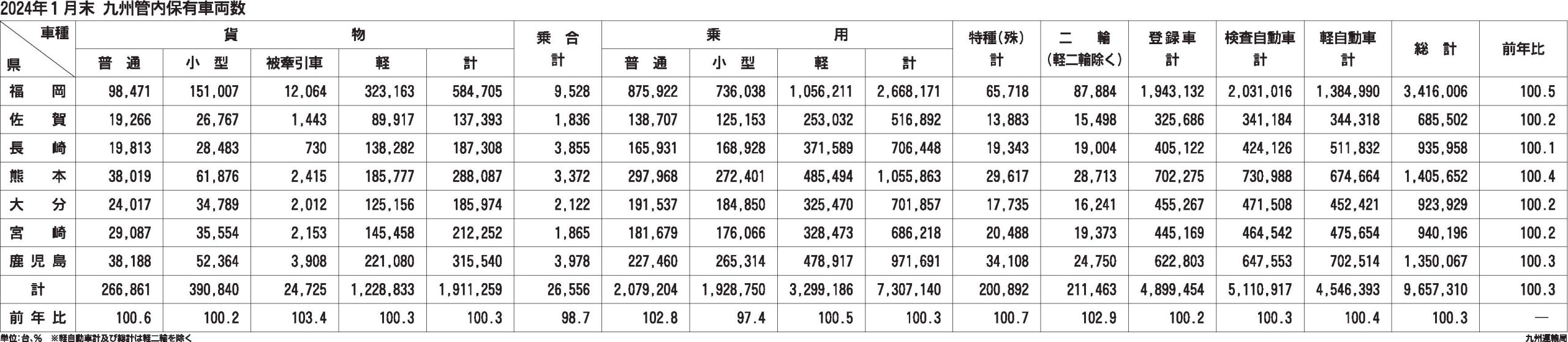 〈2024年1月末 九州管内保有車両数〉