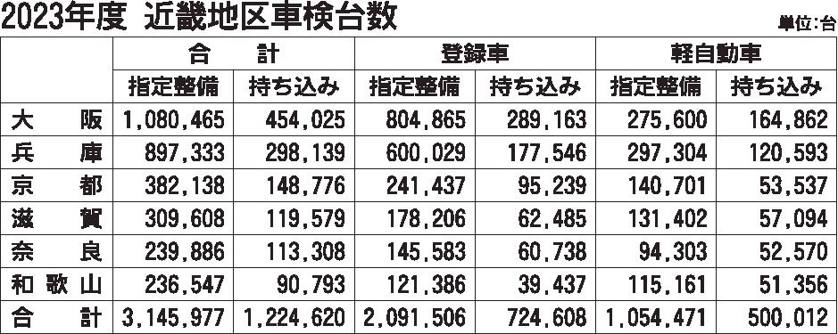 近畿2府4県の2023年度(4月~24年3月)の継続検査(車検)台数(軽自動車を含む)は、前年度比2.1%減の437万597台で、4年ぶりの減少となった。新車の長納期化などで、やむなく受検するユーザーが増加して過去最高を記録した前年度との...