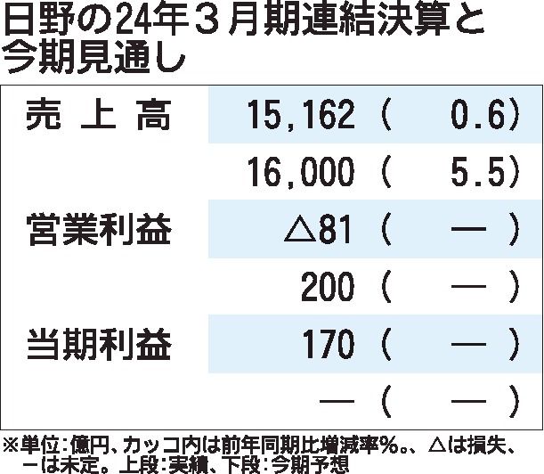 日野自動車が25日に発表した2024年3月期決算は、当期純利益が170億8700万円となり、4年ぶりに黒字転換した。当初は220億円の赤字を見込んでいた。認証関連損失などを資産売却でカバーし、利益を確保した。25年3月期は、売上高は増収、営業利益で黒字化を見込む一方、当期純利益は未定とした。