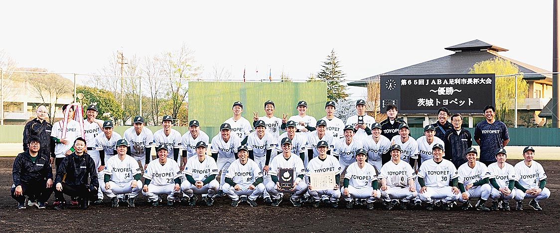 【水戸】茨城トヨペット(幡谷俊一郎社長)硬式野球部は、足利市のジェットブラックフラワーズスタジアム(市総合運動場硬式野球場)で開催された「第65回JABA足利市長杯」で初優勝した。 同大会は5~7日にかけて行われ、10チームが出場した。同...