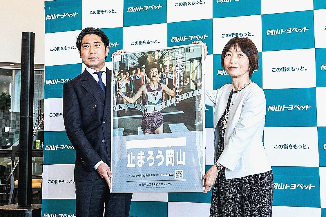 【岡山】岡山トヨペット(末長一範社長)は、「交通事故ZERO(ゼロ)プロジェクト」の第9弾として、信号機のない横断歩道での自動車の一時停止を訴求する独自の啓発動画「止まろう岡山」を制作し、ウェブ上での公開を開始した=写真。 同社は、社会貢...