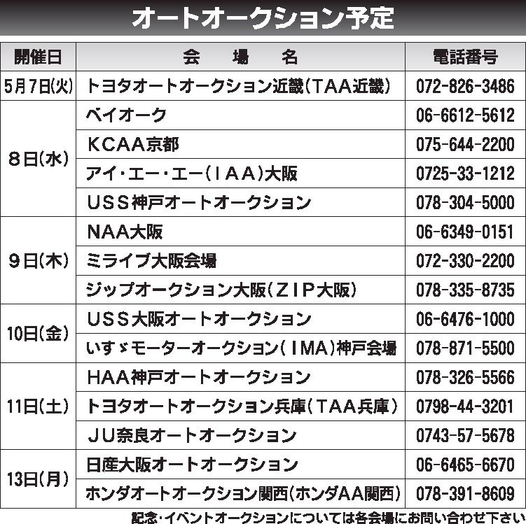〈オートオークション予定〉近畿地区 2024/5/7~13
