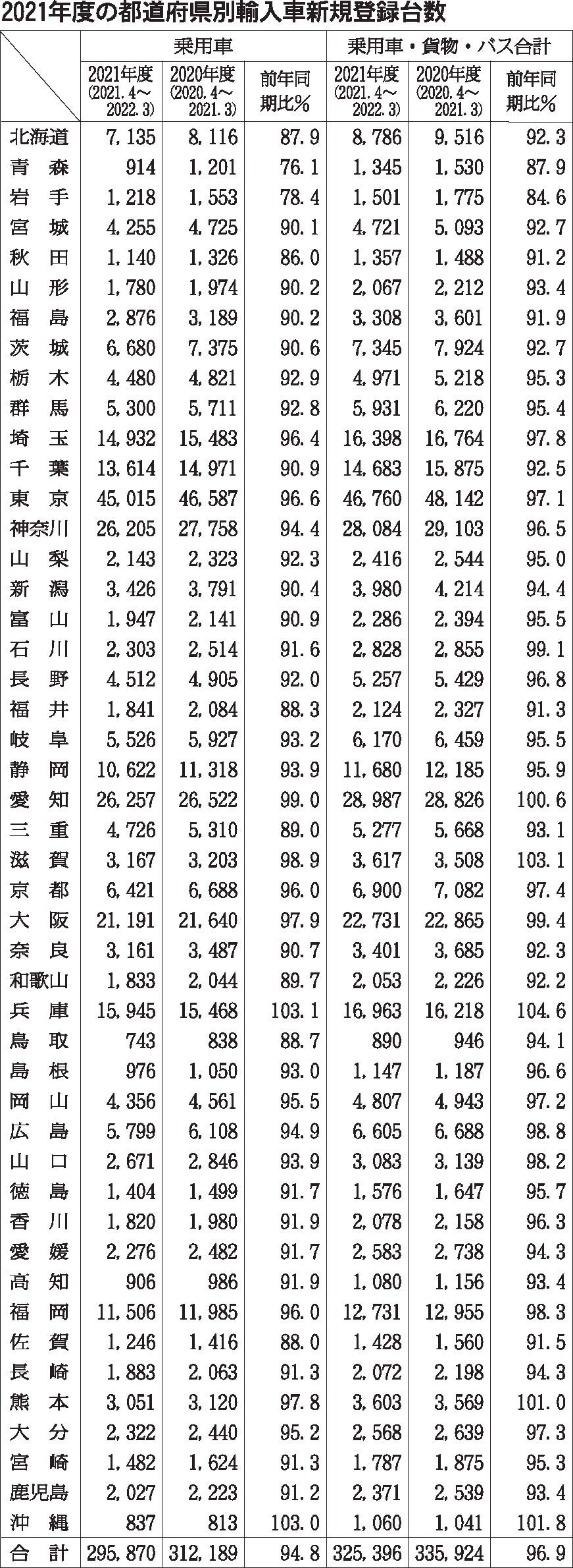〈2021年度の都道府県別輸入車新規登録台数〉